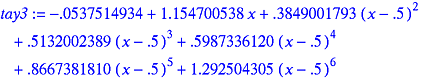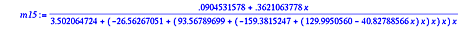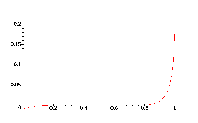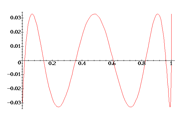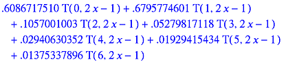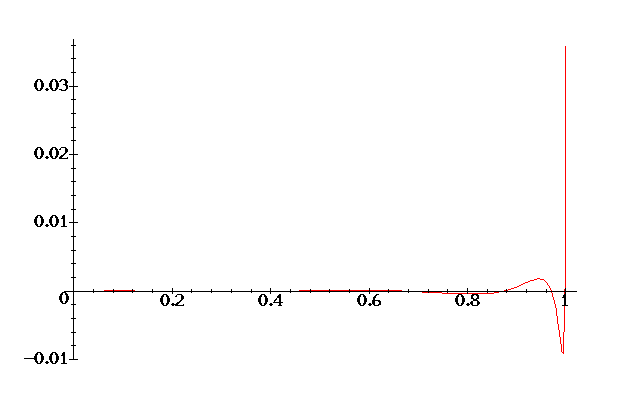 Finally, rational minimax approximations would be expected to be even better than polynomials, especially when the function has non-polynomiallike things, such as singularities. However, in most cases, Maple and Mathematica fail to compute them, with the error message Error, (in numapprox/remez) error curve fails to oscillate sufficiently; try different degrees. These cases failed here: [3,3], [5,1], [4,2], [2,4]. Here is the [1,5] quotient.