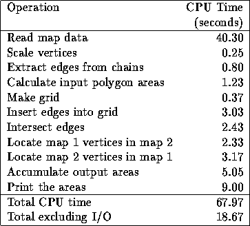 A common question relates to the uniformity of the data in the cells. An uneven distribution would seem to be inefficient. This problem is worse as the grid gets finer, the data gets more granular, and the distribution less uniform. In fact this has never been a problem for any real data ever tested, either in overlay-area calculation, or in other related programs in computer aided design. Although bad examples are easy to fabricate, the grid structure is tolerant of the amounts of variation that occur in real data.